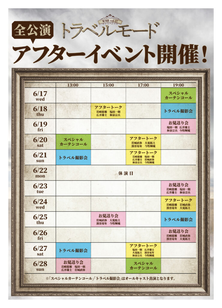 ※トラベル撮影会とスペシャルカーテンコールには全キャストが出演します。
